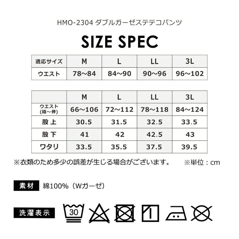 ハミューレ メンズ ダブルガーゼステテコパンツ HMO-2304 綿 春 夏 ズボン 作業 部屋着 リラックス プロノ