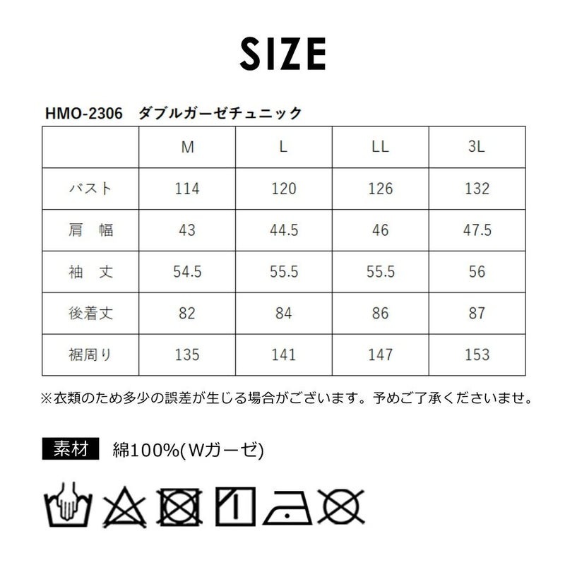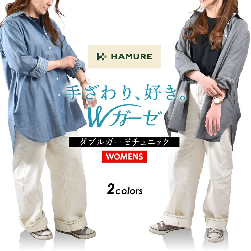 ハミューレ レディース ダブルガーゼチュニック HMO-2306 綿 春 夏トップス 作業 部屋着 リラックス プロノ HAMURE