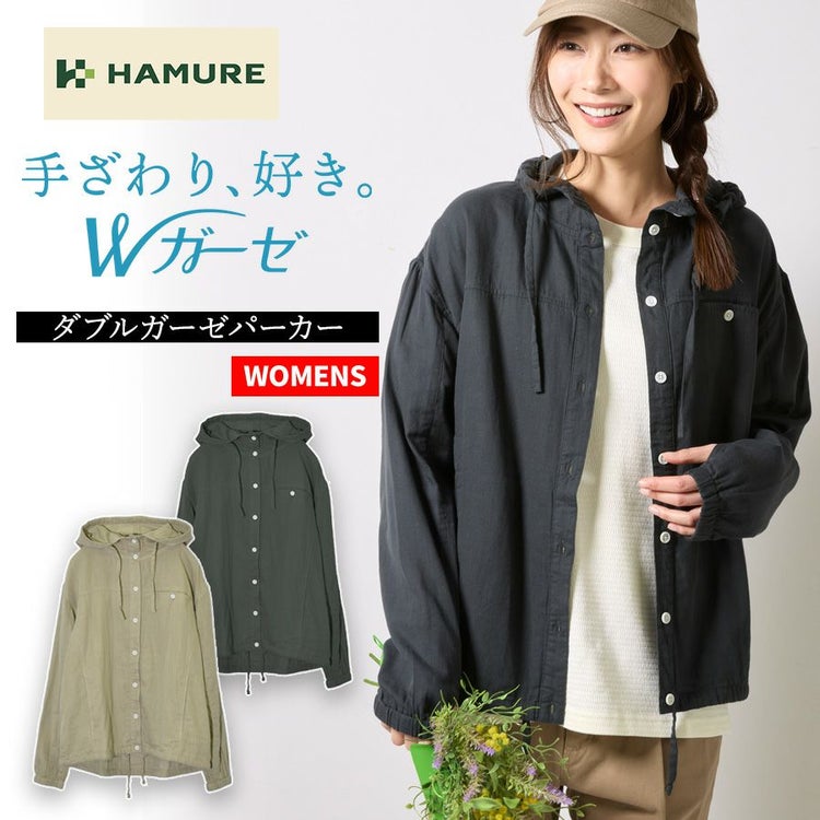 ハミューレ レディース ダブルガーゼシャツパーカー HMO-2501 コットン 綿100% Wガーゼ UVカット 通気性 涼しい 肌触りが良い 農家 ガーデニング HAMURE プロノ