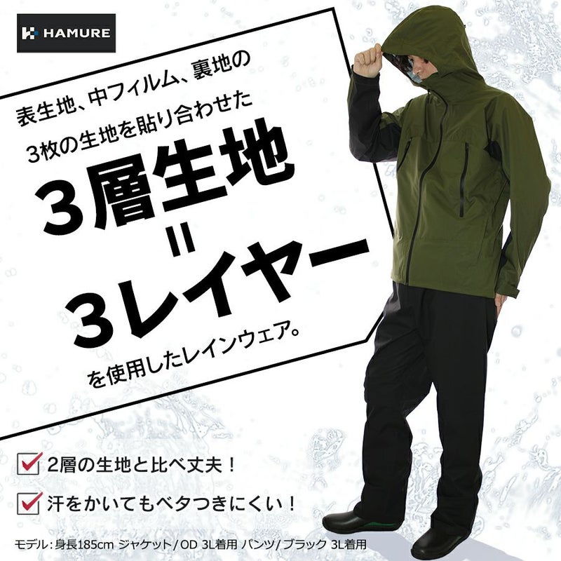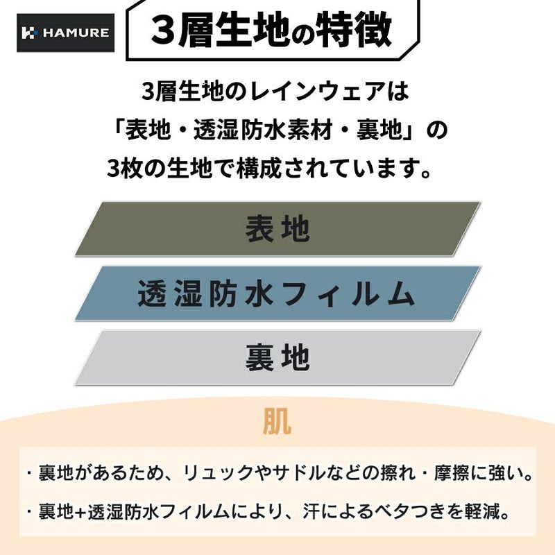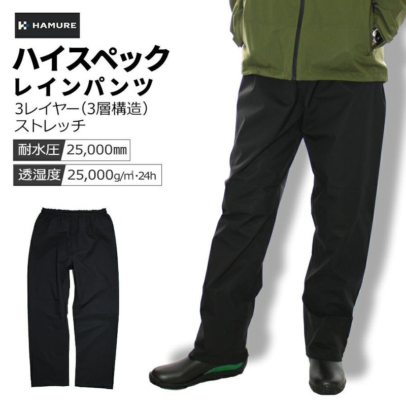 ハミューレ 透湿防水 3レイヤーストレッチレインパンツ HMU-2302 HMU-2462 S~3L カッパ レインウェア 雨 通勤 通学 アウトドア 仕事 作業 プロノ