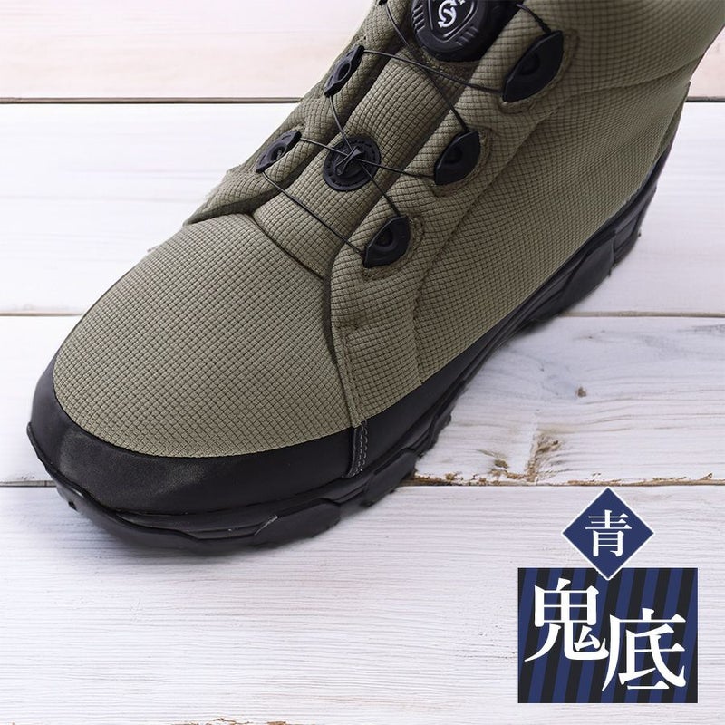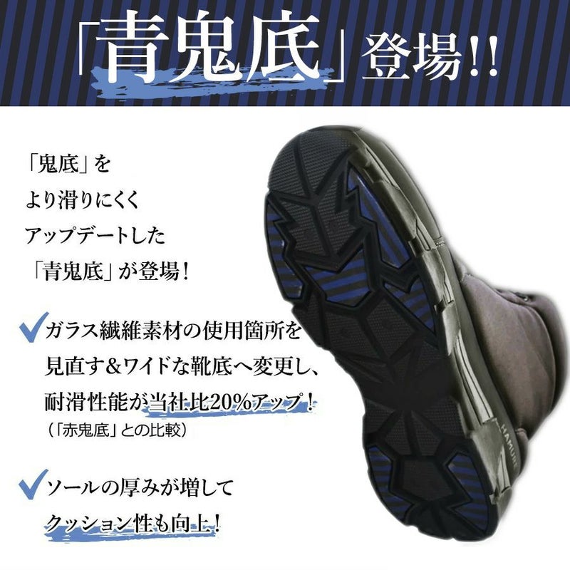・耐滑性に優れたオリジナルのガラス繊維ソール「赤鬼底」を、より滑りにくくアップデートした「青鬼底」を装備!