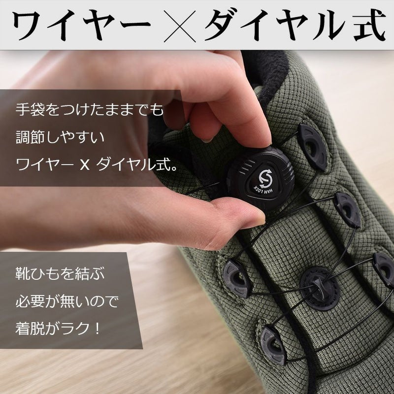 ・手袋をつけたままでも、片手でも調節しやすく便利なワイヤー×ダイヤル式。靴ひもを結ぶ手間いらずで着脱が楽ちん