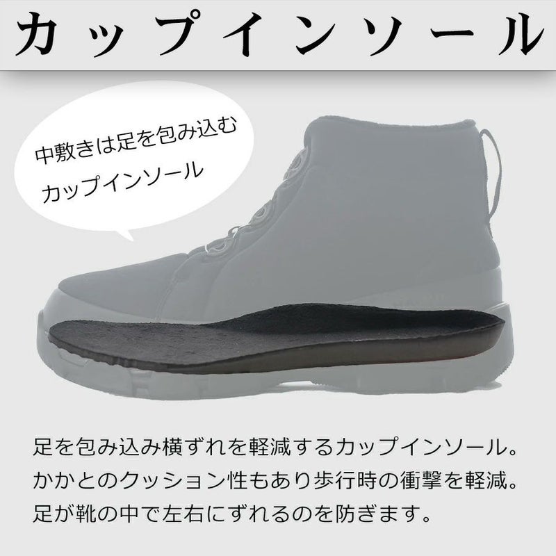 グリップ力の高いソール+足の横ずれを軽減するカップインソールで、冬場の結露や雪の上でもしっかり歩けて大活躍!!