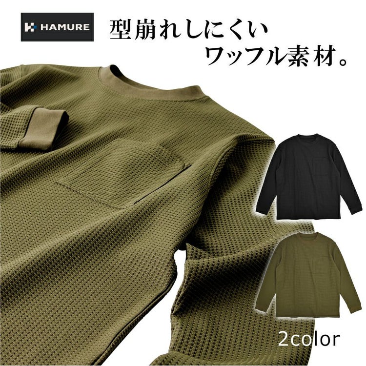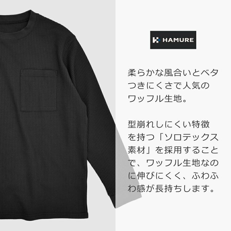 ハミューレ長袖クルーネックワッフルTシャツ HMU-2434 SOLOTEX トップス 吸汗速乾 UVカット ストレッチ 形状記憶 夏 農家 ガーデニング 動きやすい プロノ