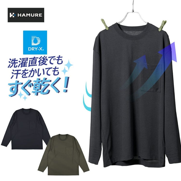 ハミューレ DRY-X超速乾長袖Tシャツ HMU-2439 メンズ ロンT ストレッチ すぐ乾く 汗対策 作業服 作業着 スポーツ HAMURE プロノ