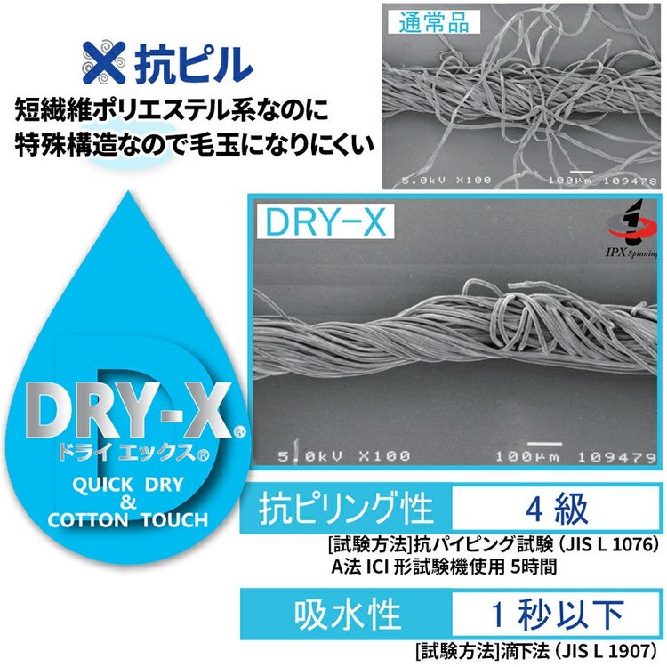 驚異の速乾性を誇る「DRY-X」生地は洗濯後にすぐ乾く高機能生地を使用。