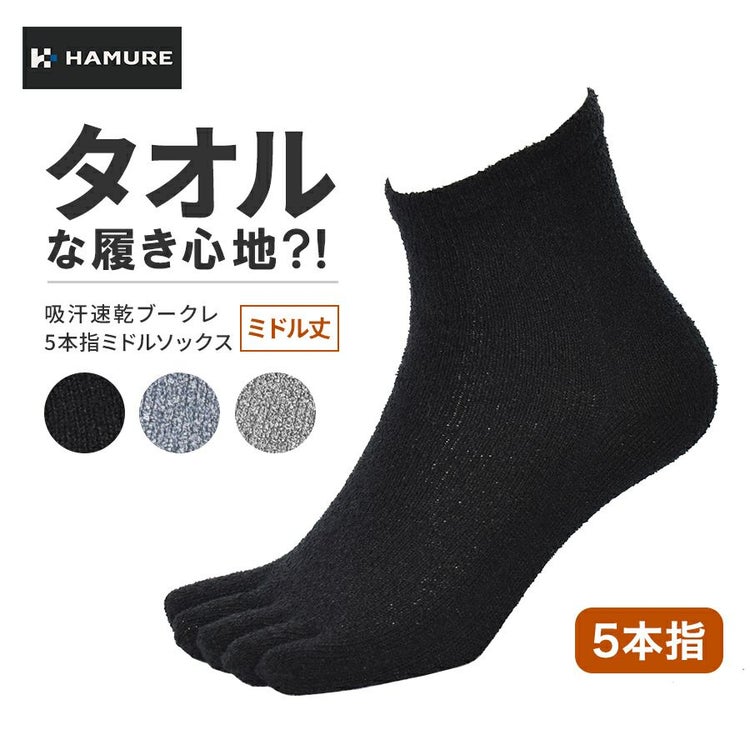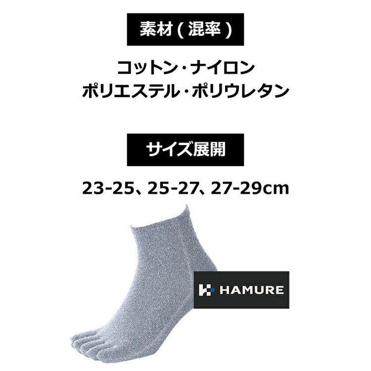 HAMURE ハミューレ 5本指靴下 5本指ソックス 通気性 ミドル丈 スポーツソックス 蒸れ防止 ムレ防止 先丸 ブーツ 吸水速乾