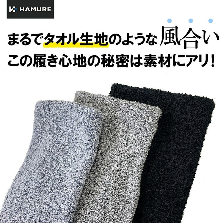 ★生地の表面に糸の輪が出るように加工した「ブークレ素材」を使用。まるでタオルのような柔らかい履き心地の靴下。
