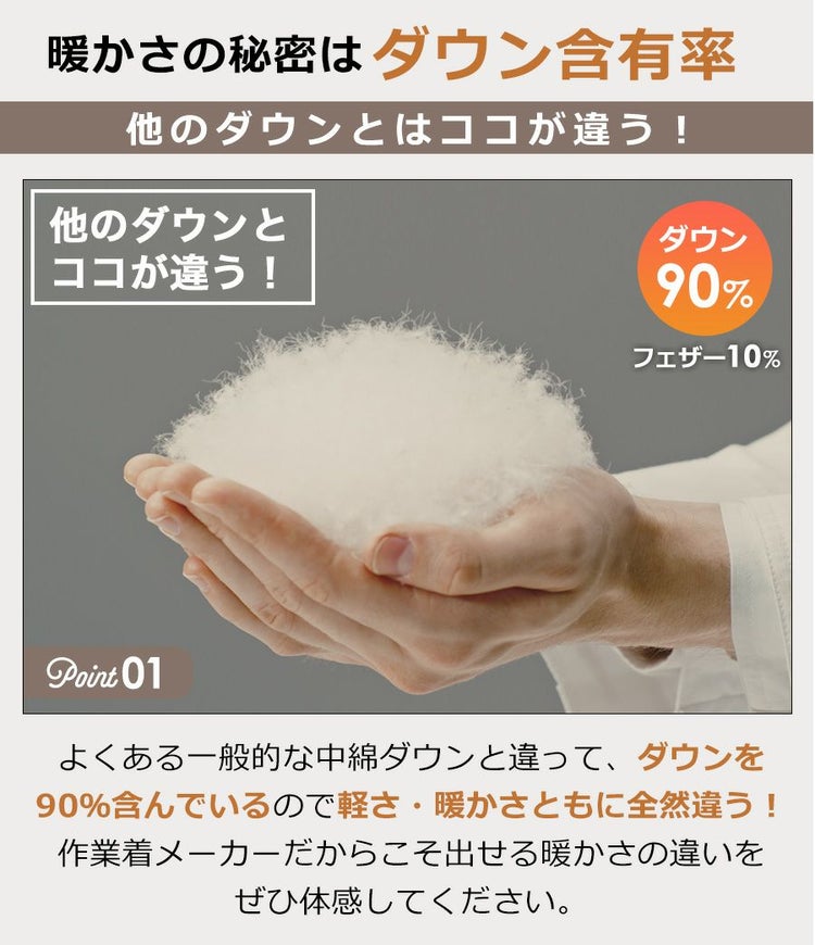 ■軽くて暖か、ダウン90%&フェザー10%配合!