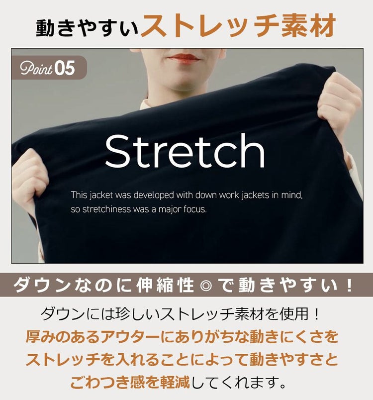 ■ダウンでは珍しいストレッチ素材で動きやすい!