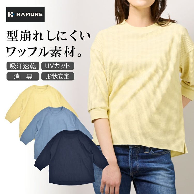 ハミューレ SOLOTEX(R)使用 レディース7分袖ワッフルTシャツ HMU-2515 トップス ソロテックス 吸汗速乾 UVカット ストレッチ 形状記憶 動きやすい HAMURE プロノ