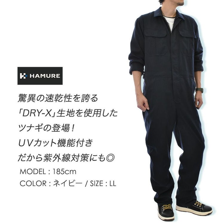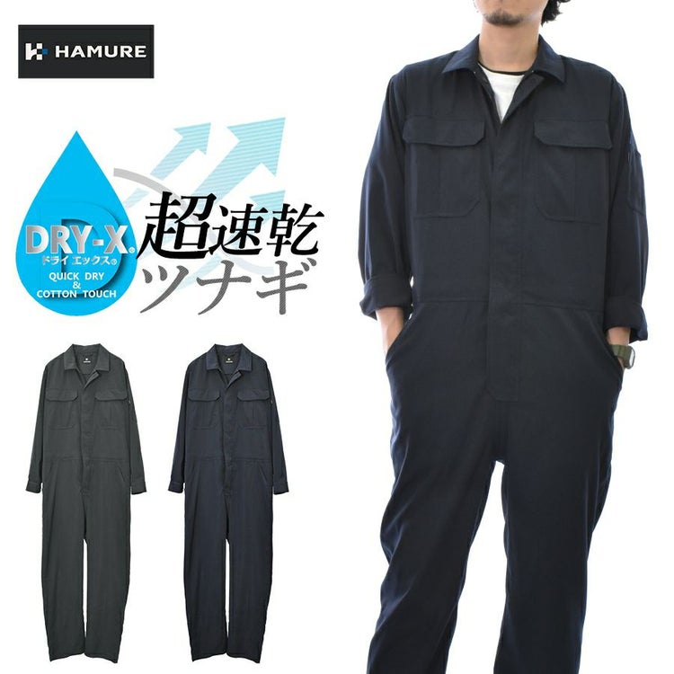 ハミューレ DRY-X超速乾ストレッチツナギ HMU-2523 メンズ すぐ乾く つなぎ オーバーオール 作業服 作業着 ストレッチ 農業 整備 DIY プロノ