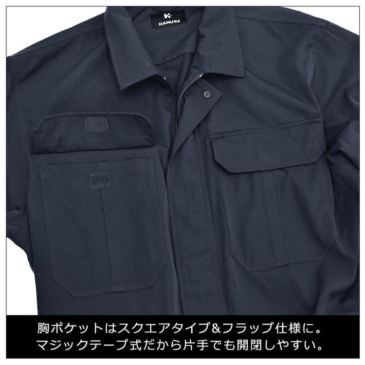 男性 メンズ ツナギ オーバーオール ジャンプスーツ 長袖 ストレッチ M L LL 3L 通勤 仕事 作業着 作業 吸水速乾 形態安定 UVカット 紫外線対策 紫外線予防 抗ピル ブラック チャコール 黒 シンプル ベーシック バイク 農業 整備作業 DIY アウトドア ツーリング 30代 40代 50代 60代 ハミューレ HAMURE