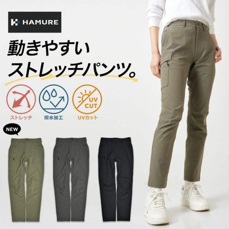 【4L】ハミューレ レディース ナイロンストレッチパンツ HMU-2524 撥水 UVカット 作業 仕事 アウトドア カジュアル おしゃれ HAMURE