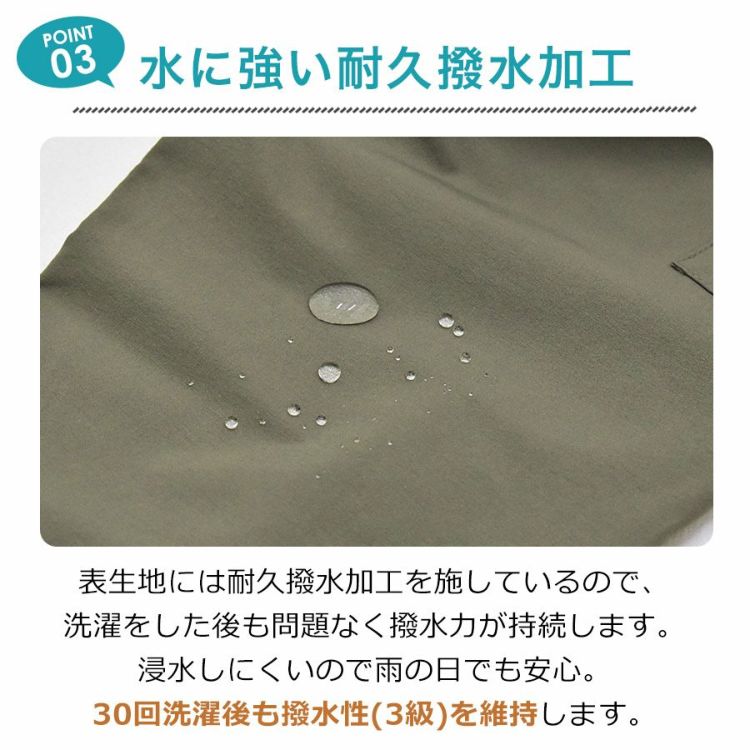 表生地には耐久撥水加工を施しているので、洗濯した後も問題なく撥水力が持続します。