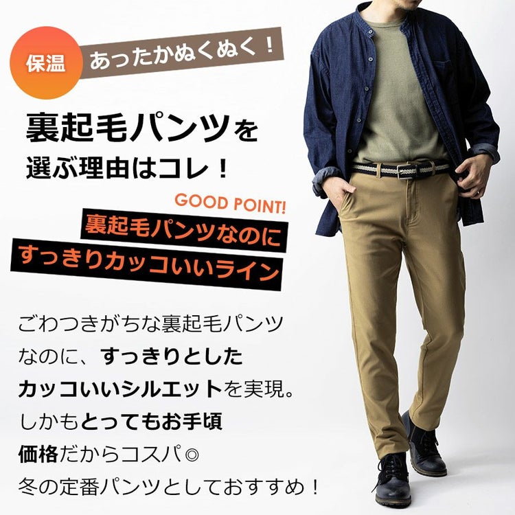 ・あったかぬくぬくの裏起毛パンツで、真冬のお出掛けも暖かく快適になります。