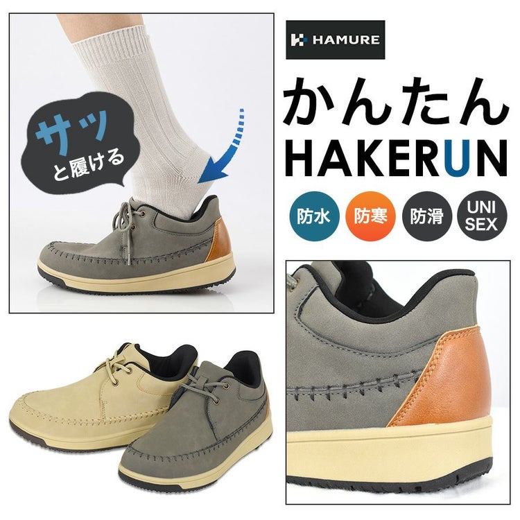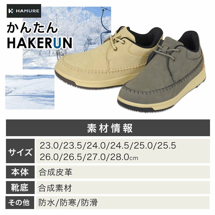 ハミューレ かんたんHAKERUN 防水暖(ローカット) HMU-2547 ハンズフリー 防寒靴 防水 防滑 スニーカー 冬靴 メンズ レディース プロノ