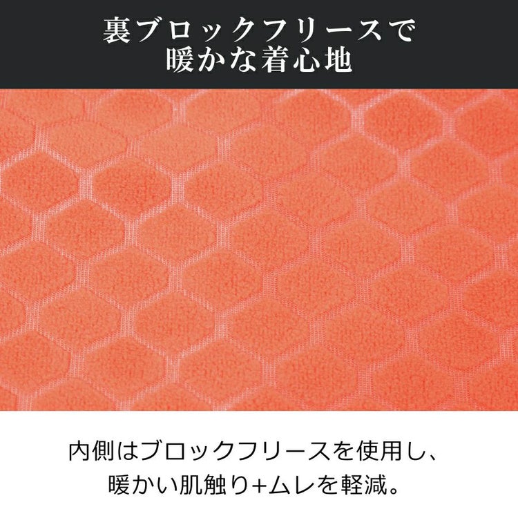 保温性:裏地にブロックフリースを使用し、暖かさとムレにくさを両立