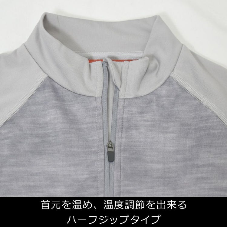 首元を温め温度調節できるハーフジップがポイント。