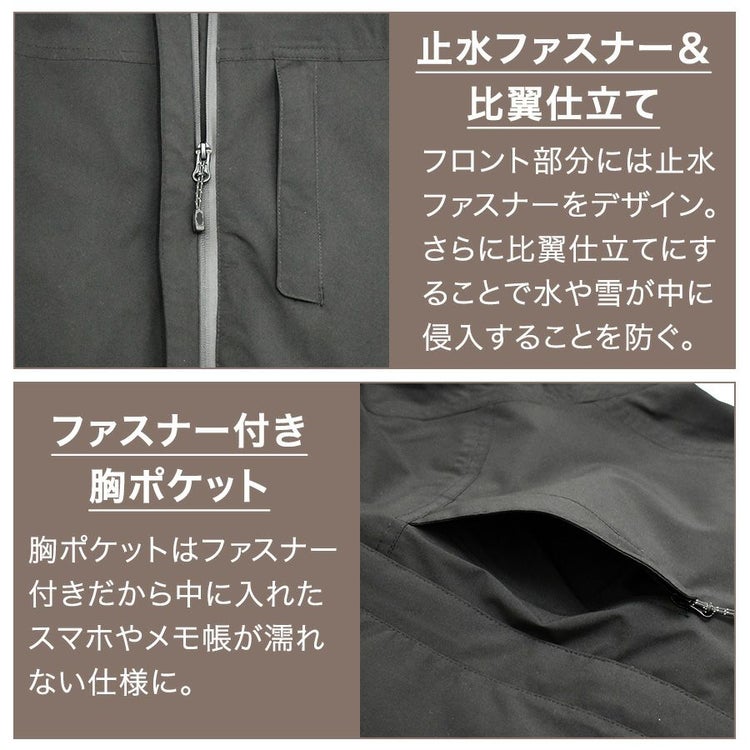 ◆耐水圧10,000mm、透湿度10,000g/m2・24h=大雨にも対応可能レベルの高い防水性、蒸れにくさ アウトドアブランドに匹敵するハイスペックにも関わらずリーズナブルな価格を実現しました!