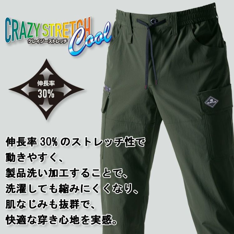 バートル ナイロンタフタカーゴパンツ 1022 メンズ ストレッチ 接触冷感 吸汗速乾 UVカット 夏物 作業服 作業着 作業ズボン BURTLE