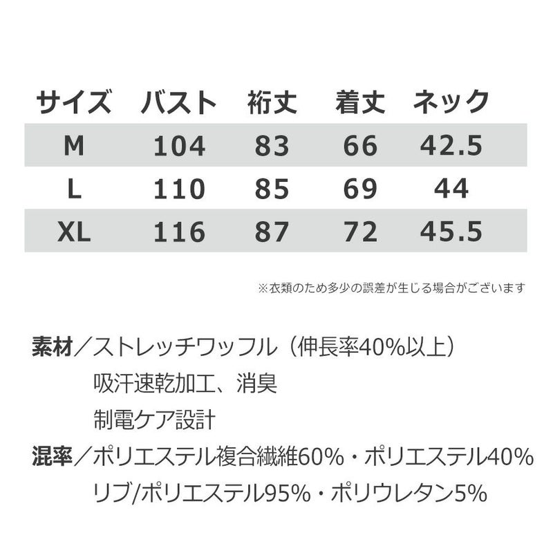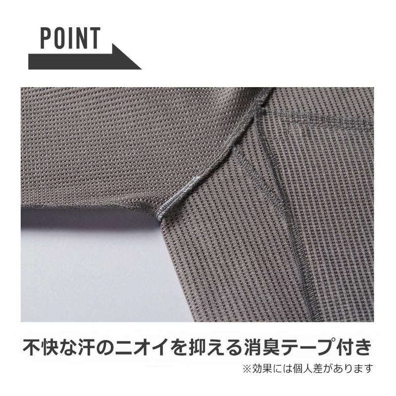 軽さ、吸水性、ストレッチが特徴の身体に心地よく馴染むワッフル機能素材。