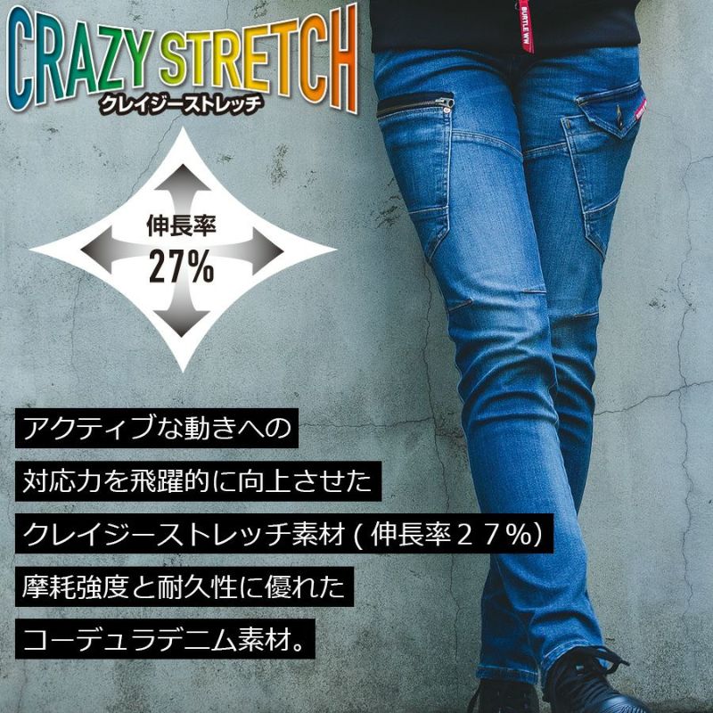 バートル クレイジーストレッチ コーデュラデニムカーゴパンツ 5002 ワークパンツ 丈夫 作業服 作業着 作業ズボン プロノ BURTLE