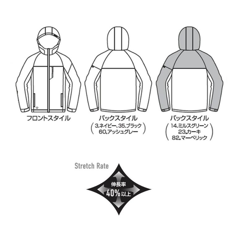 軽量でありながら、保温性やストレッチ性に優れるスポーティーなジップアップフーディは様々なワークシーンからタウンユースまで幅広いシチュエーションで活躍します。