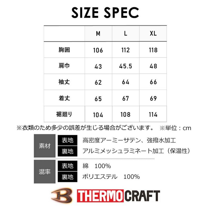「BURTLE(バートル)」綿防寒ジャケット/8210 サーモクラフト 綿100% 作業服 作業着 アウター ブルゾン
