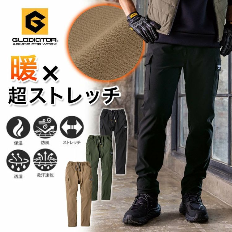 グラディエーター Gカーゴライト ストレッチライトウォームカーゴパンツ G-2205 防風 防寒 暖パンツ 作業服 ワークパンツ 作業着 作業ズボン メンズ プロノ