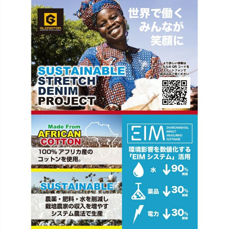 また、製造加工での水を90%、薬品は30%、電力は30%従来品生産より削減した新たな時代を先取りする「サステナブルストレッチデニム」です。
