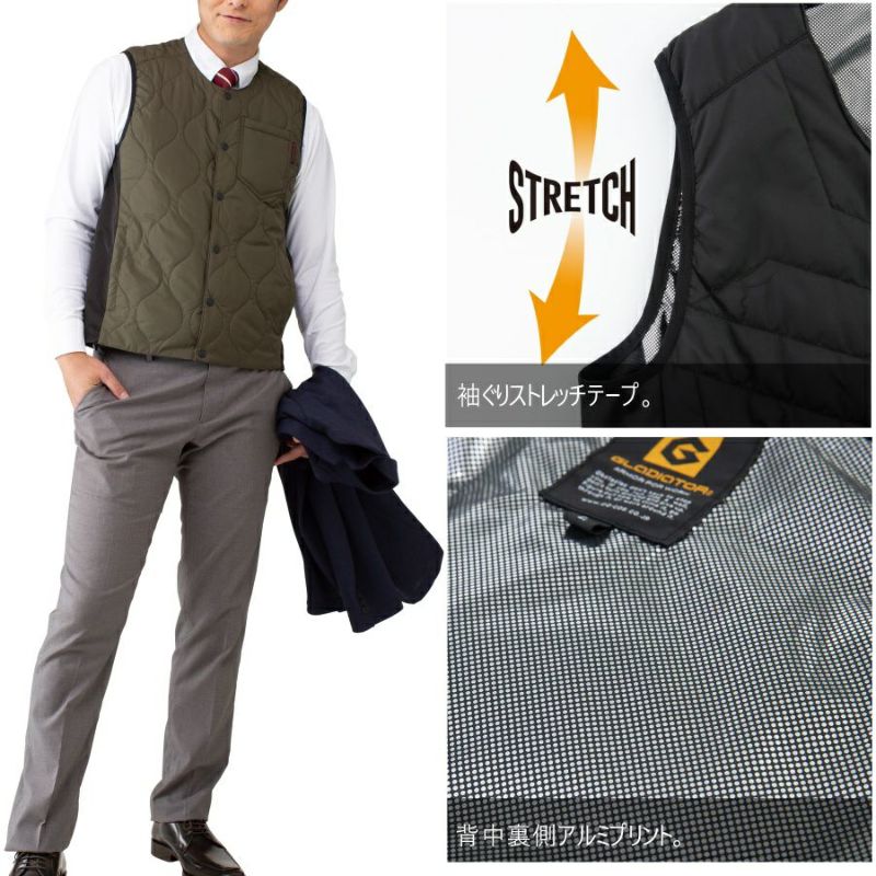「GLADIATOR(グラディエーター)」ボルトヒート クルーネックベスト/G-8079 防寒 アウター 電熱 作業服 防寒ベスト 作業着 メンズ