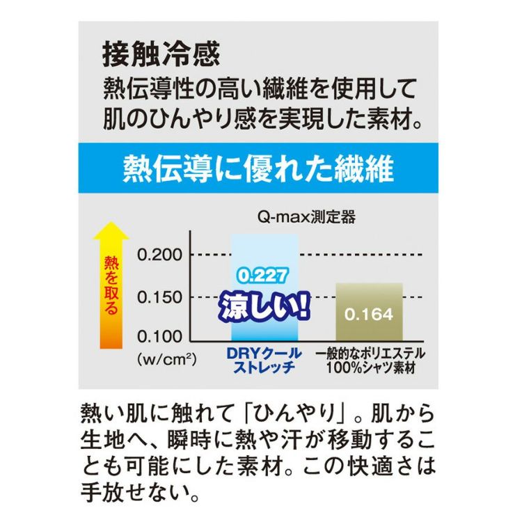メッシュにプリントされた、キシリトールプリントが水分に反応し吸熱反応を起こすので、 衣服内の熱を奪いスーッとした涼しさを感じます。