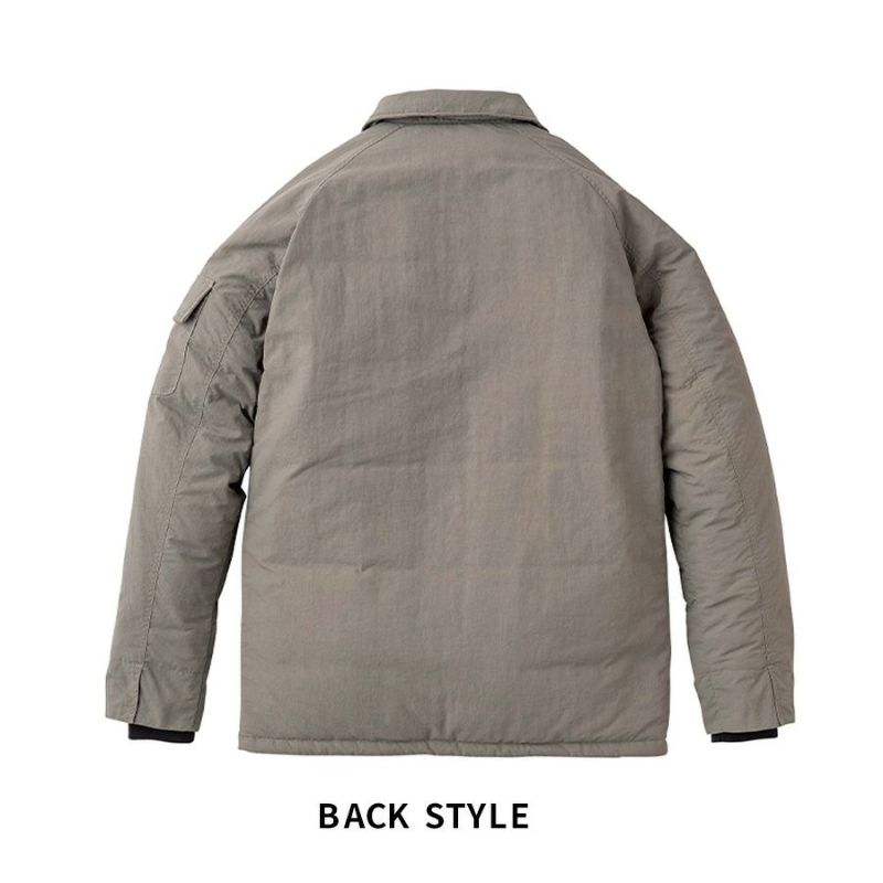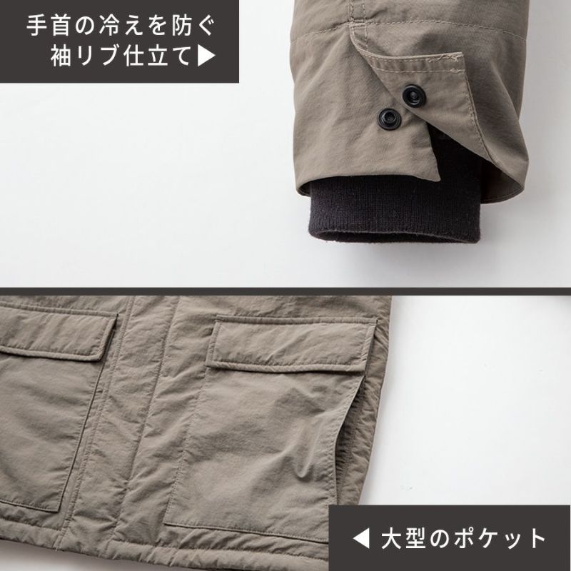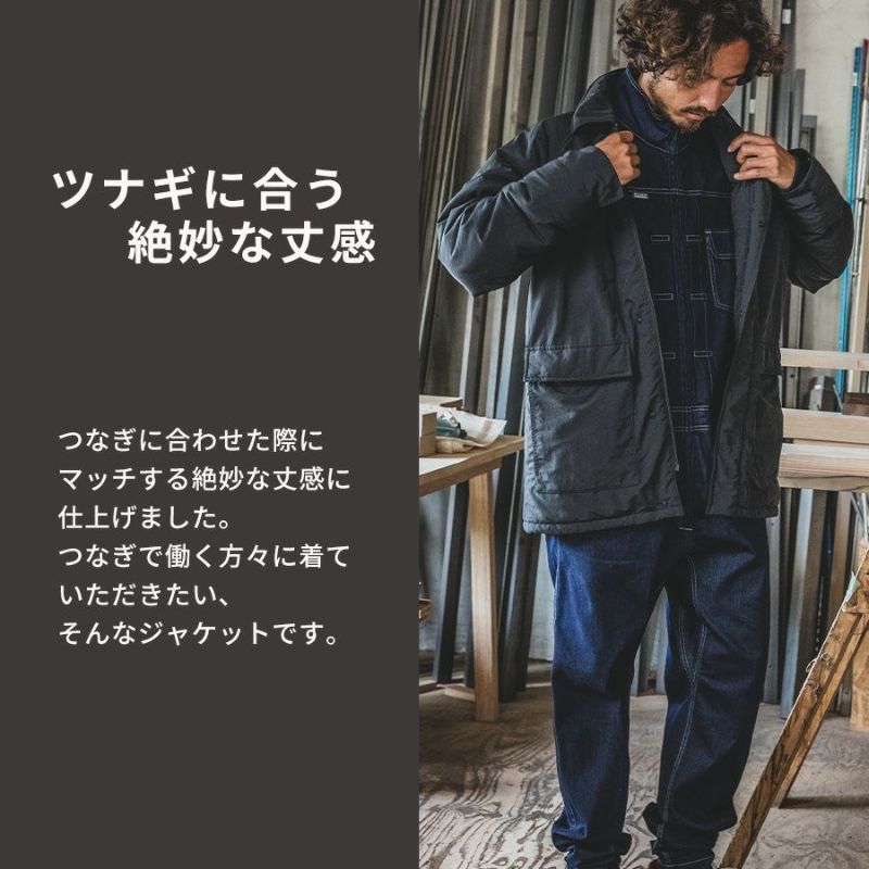 ツナギに合わせた際にマッチする絶妙な丈感や動きやすさを考えたラグラン袖といった仕様に加え、大型のポケットなどの豊富な収納面に手首の冷えを防ぐ袖リブ仕立てと充実のディテール。