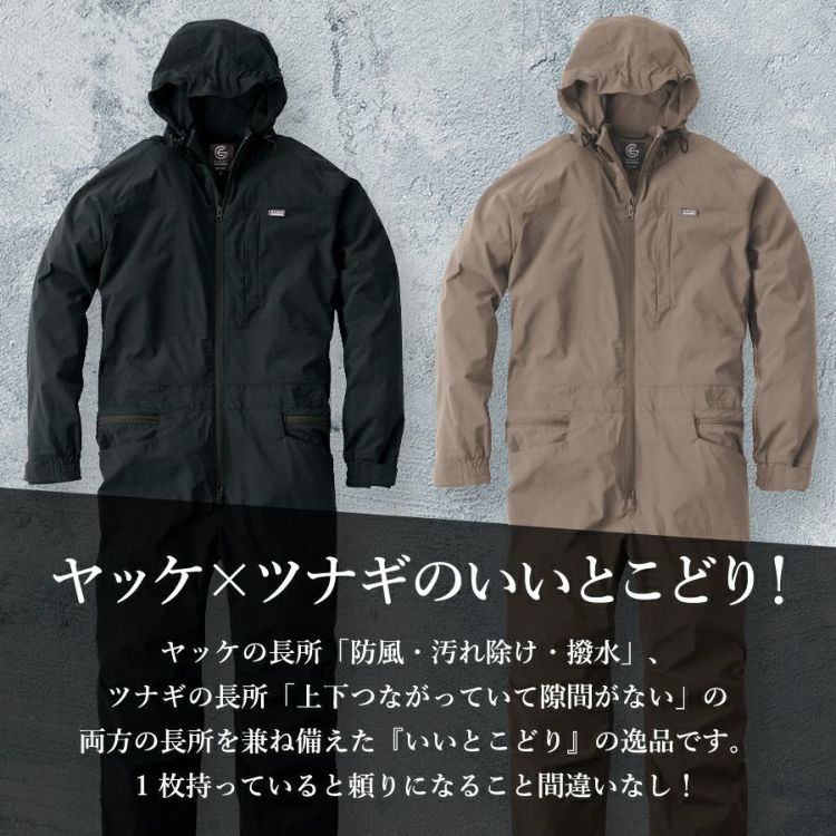 ツナギ ヤッケ つなぎ トイレ ヒップオープン アウトドア 農家 農業 整備士 キャンプ バイク ガーデニング DIY 防風 防汚 防塵 撥水 はっ水