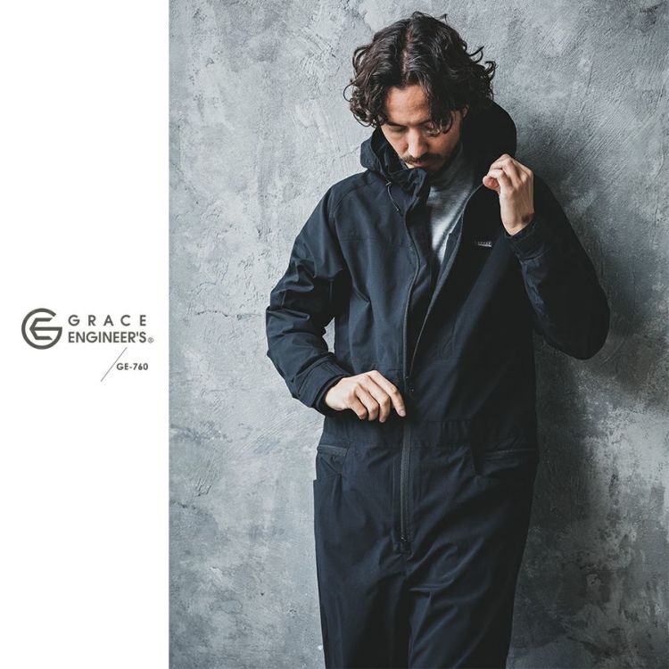 【4L-5L】グレイスエンジニアーズ ウォーターシェルツナギ GE-760 メンズ ヤッケ つなぎ トイレ ピップオープン アウトドア 農家 農業 整備士 キャンプ バイク ガーデニング DIY 防風 防塵 撥水 はっ水 GRACE ENGINEER'S