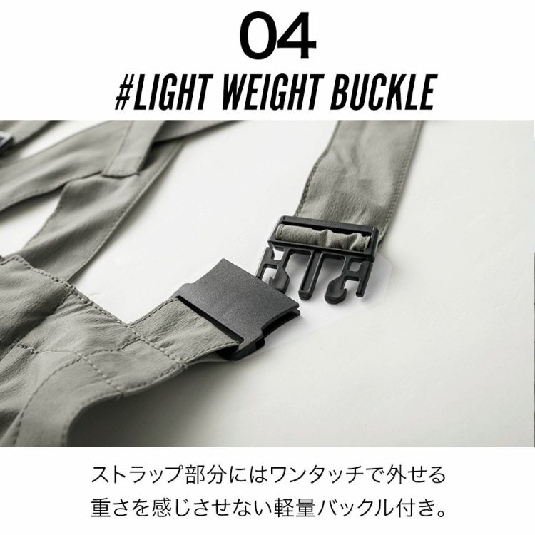 ワークシーンだけでは勿体ない着心地の良さと使い勝手の良さで人気な“ボーダレスデッキパンツ”シリーズの 新モデル。両サイドの大容量ポケットやマルチループ、そしてペットボトルも入れられるフリーポケットが大変 便利ですし、軽量さと驚きのストレッチ性がある生地も多くのユーザーの支持を得ています。