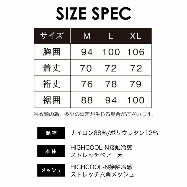 ややタイトめのシルエットで、脇・裾部分には嬉しい冷感メッシュ編み仕様。