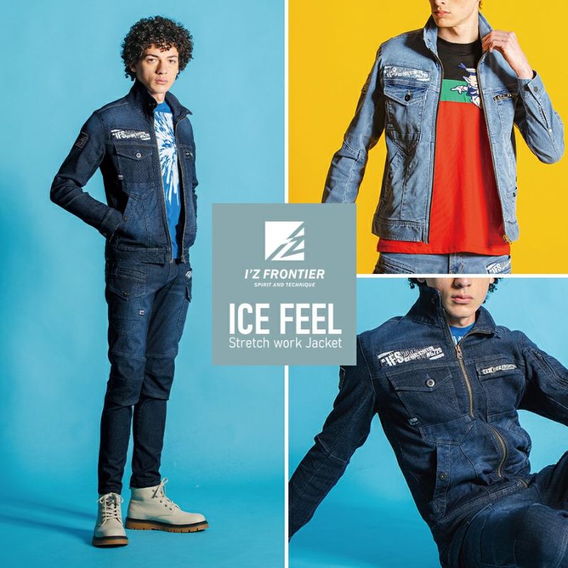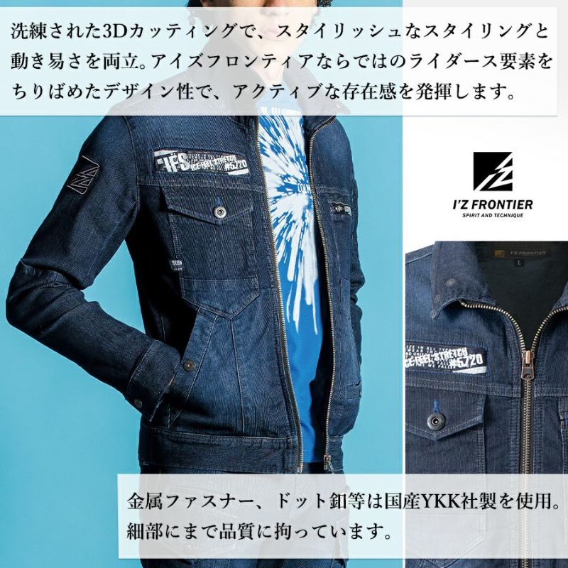 アイズフロンティア ランダムピケ デニム 接触冷感 アイスタッチ ストレッチ ライダースデザイン ワークジャケット