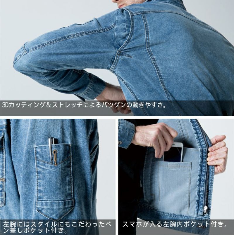 今作7410シリーズは、数あるストレッチデニムワークウェアの中でも、特に暑い季節に活躍してくれる冷感ワークウェア。