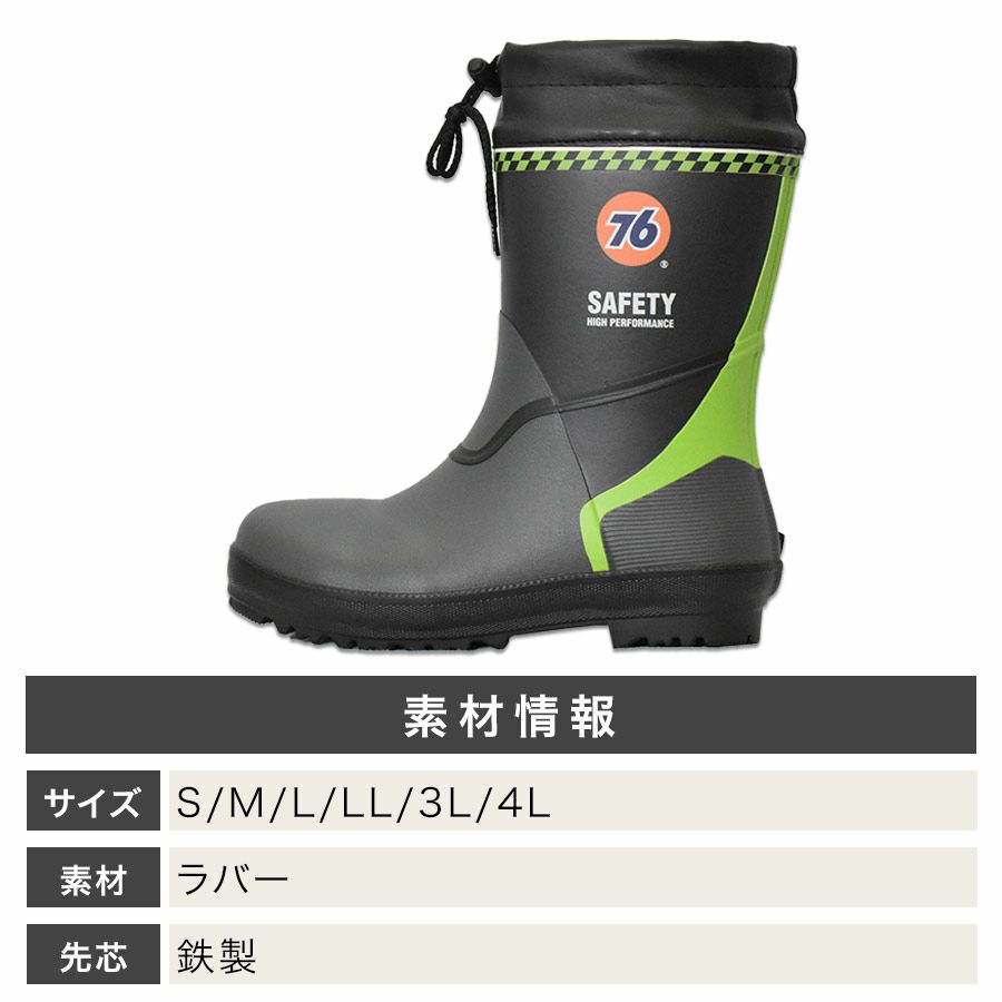 UNION76 ナナロク マリンブーツセーフティ No.76-2507 安全長靴 作業靴 レインブーツ 防水 先芯入り プロノ