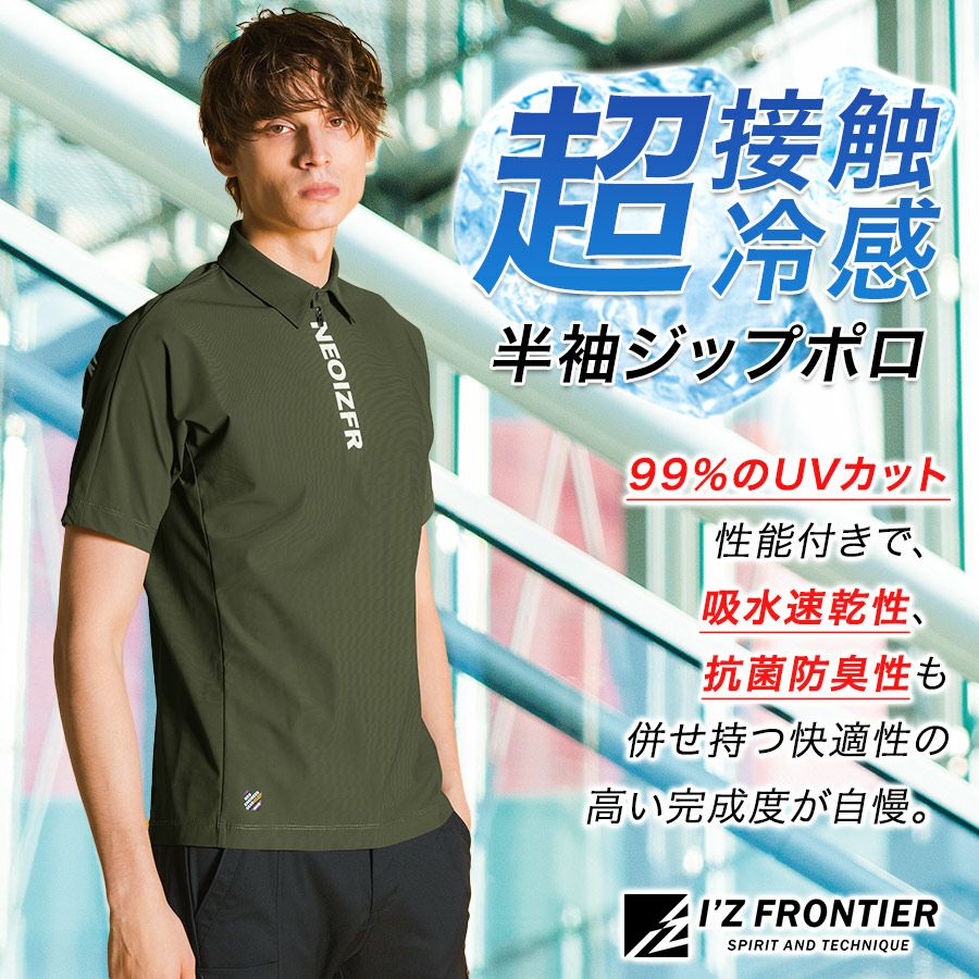 アイズフロンティア 超接触冷感ナイロンストレッチ半袖ジップポロ #045 UVカット 吸水速乾 抗菌防臭 作業着 作業服 トップス I'Z FRONTIER