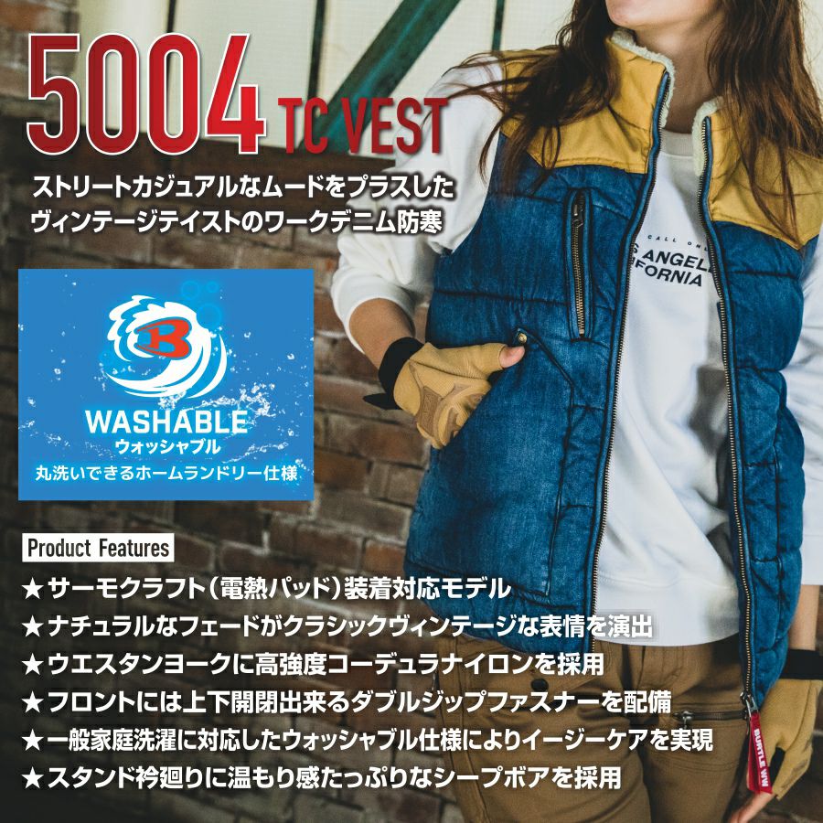 「BURTLE(バートル)」サーモクラフト対応 デニム防寒ベスト/5004 単品 電熱ウェア コーデュラ CODURA THERMO CRAFT 作業服 プロノ