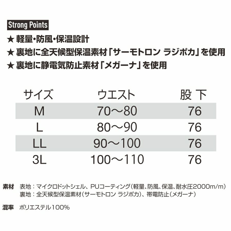 「BURTLE(バートル)」サーモトロン”RadiPoka”防寒パンツ/7212