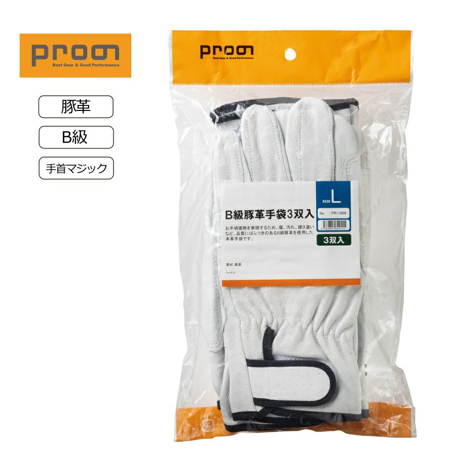プロノ オリジナル B級豚革手袋 3双入 PR-1909 作業用手袋 Prono