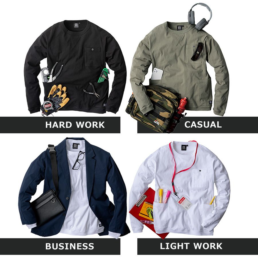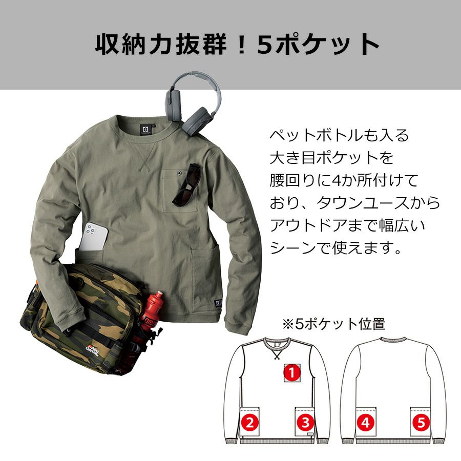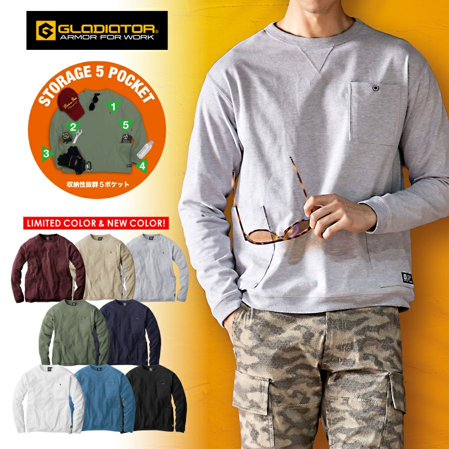 グラディエーター 5ポケット長袖Tシャツ G-958 ロンT 綿 コットン カットソー インナー 大容量 プロノ ハミューレ