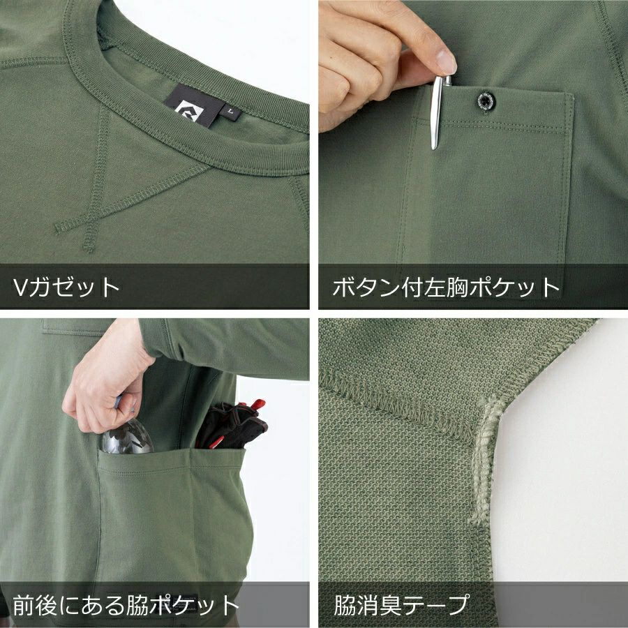 「バートル」ロングスリーブTシャツ/155 長袖 ドライ 吸汗速乾 UVカット 作業 リサイクル サスティナブル