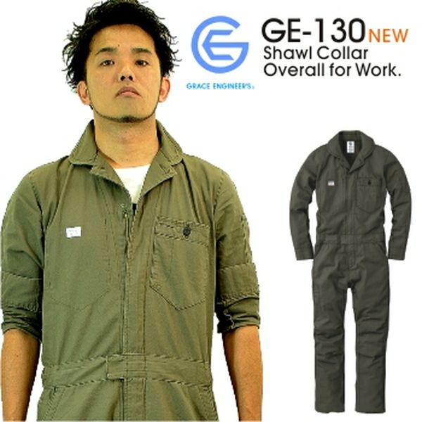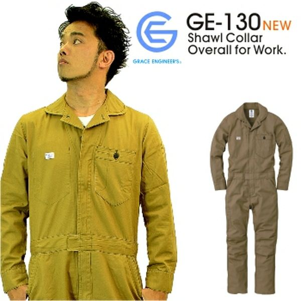 「GE(GRACE ENGINEER'S)」綿100%オックス織ハードユースツナギ/GE-130/【2016 WEX 新作 ツナギ】* ツナギ つなぎ オーバーオール メンズ おしゃれ 作業着 *