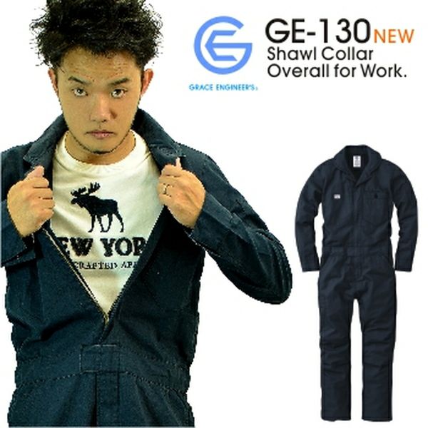 【4L】【5L】「GE(GRACE ENGINEER'S)」綿100%オックス織ハードユースツナギ/GE-130/【2016 WEX 新作 ツナギ】* ツナギ つなぎ オーバーオール メンズ おしゃれ 作業着 *
