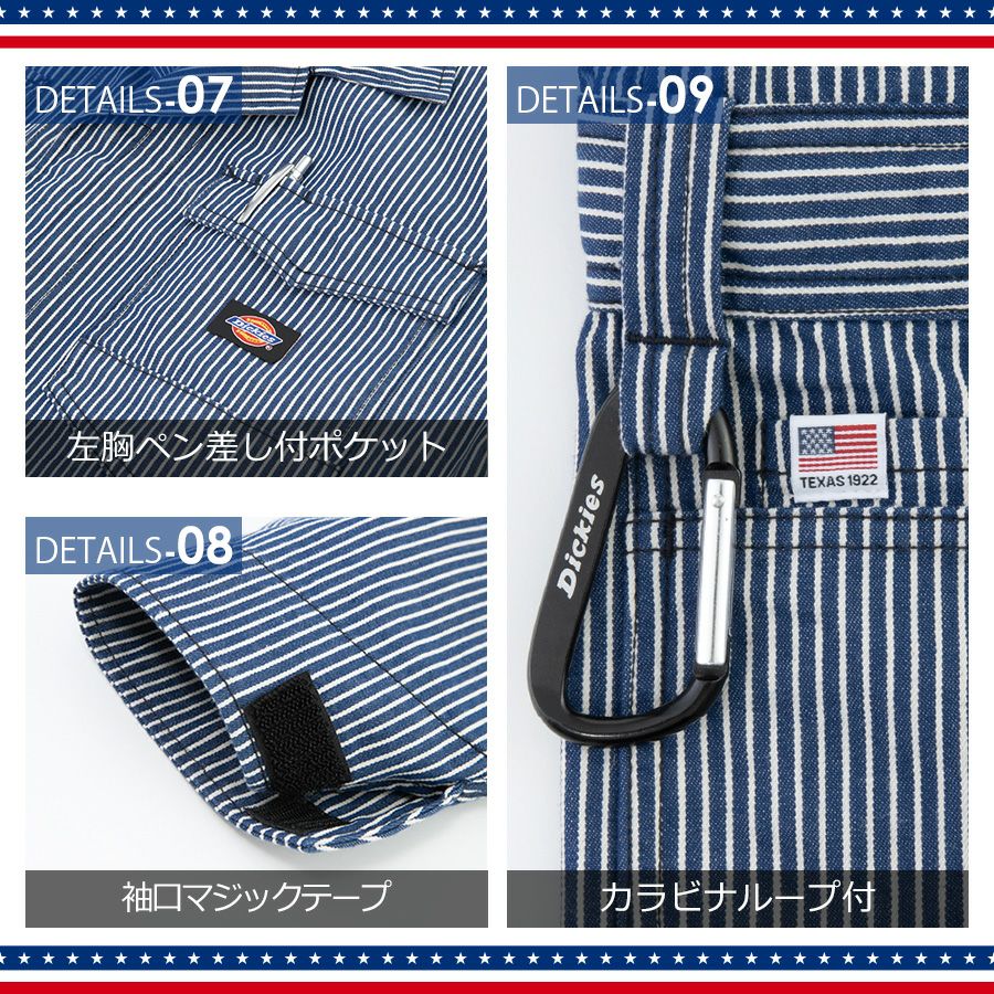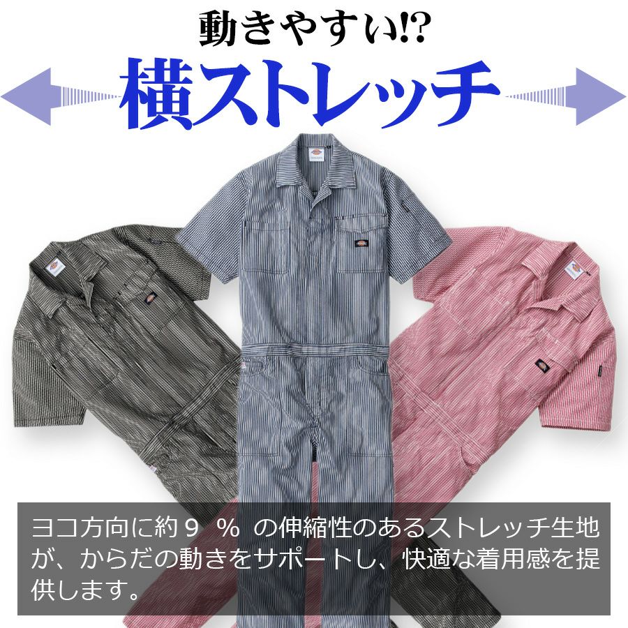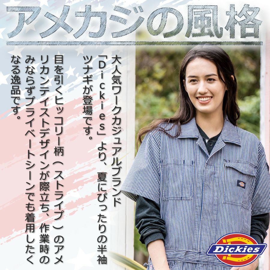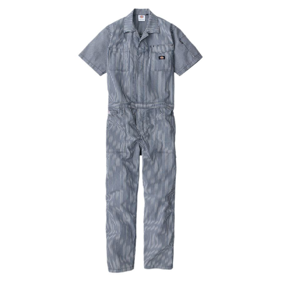ディッキーズ ライトストレッチヒッコリー半袖ツナギ D-7102 メンズ レディース 作業着 作業服 接触冷感 軽量 UVカット ストレッチ 夏用 おしゃれ アメカジ Dickies